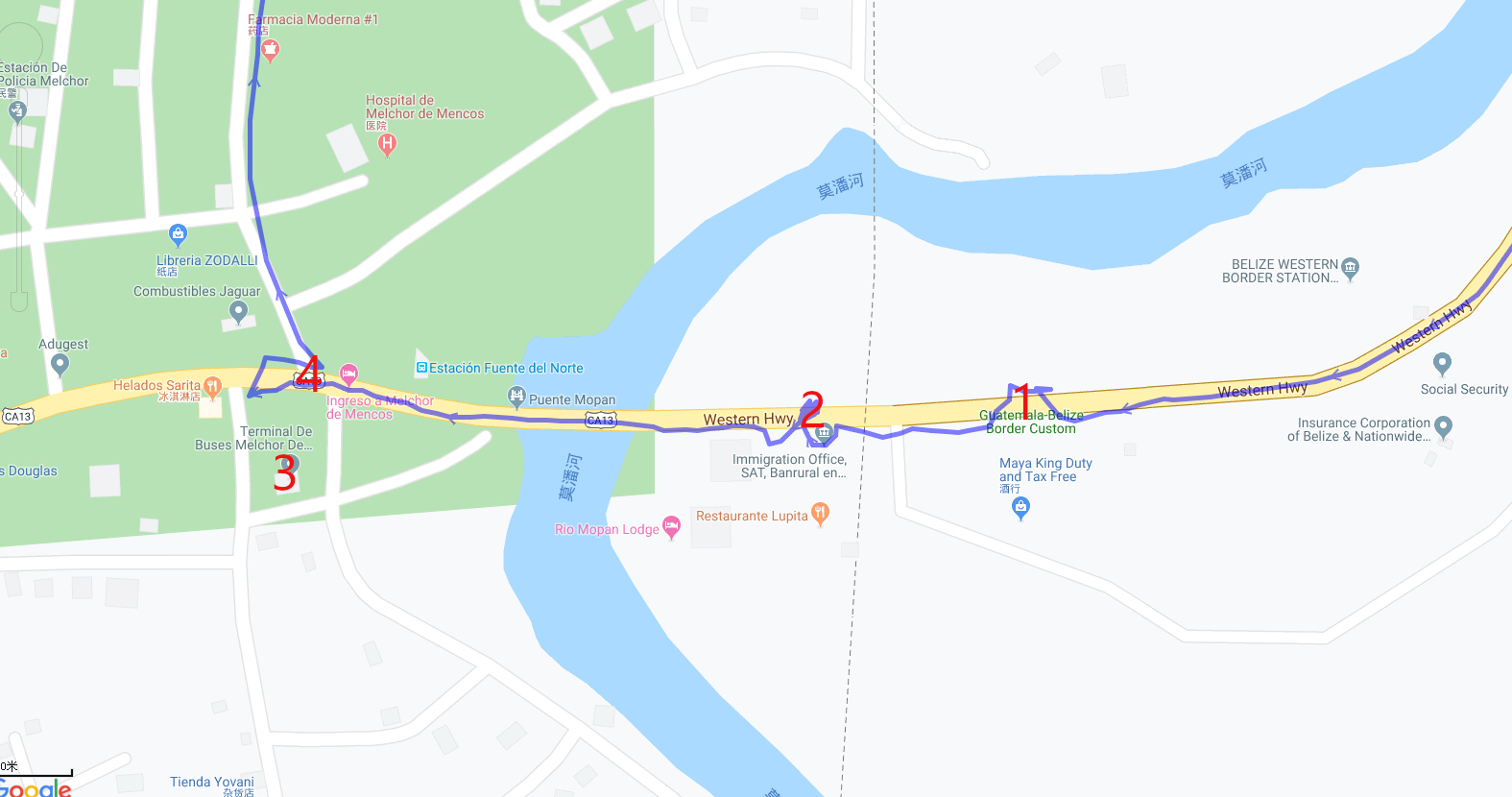 由于此次到达边境小镇benque viejo del carmen时,刚好是星期天,危地马拉大使馆不开门,所以才决定尝试用美国签证直接去闯关。