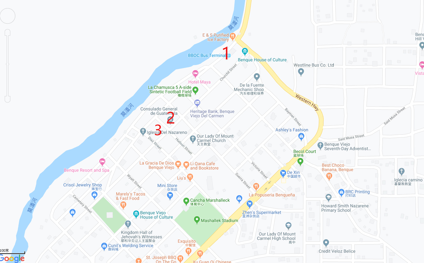 2. 如果为了签证,要在边境待2天以上,建议到san ignacio去待,那里堆满欧美的老外,更适合背包客在哪逗留。并且从边境小镇benque viejo del carmen的车站,坐车到san ignacio只有11公里,车票票价只要2伯利兹币,有频繁的汽车。