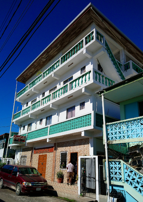 出了海关大楼,就找到出租车司机,让他把我送到镇上的危地马拉大使馆,车费花了5伯利兹币,还是和别人合乘的。到了镇上,当晚就在危地马拉大使馆旁边的maxim旅馆住下来了(华人推荐的,无空调,33美金/晚,有空调43美金/晚,我住的时候,感觉房间和床都一股发霉味道,整晚都感觉有东西咬我,不推荐)。