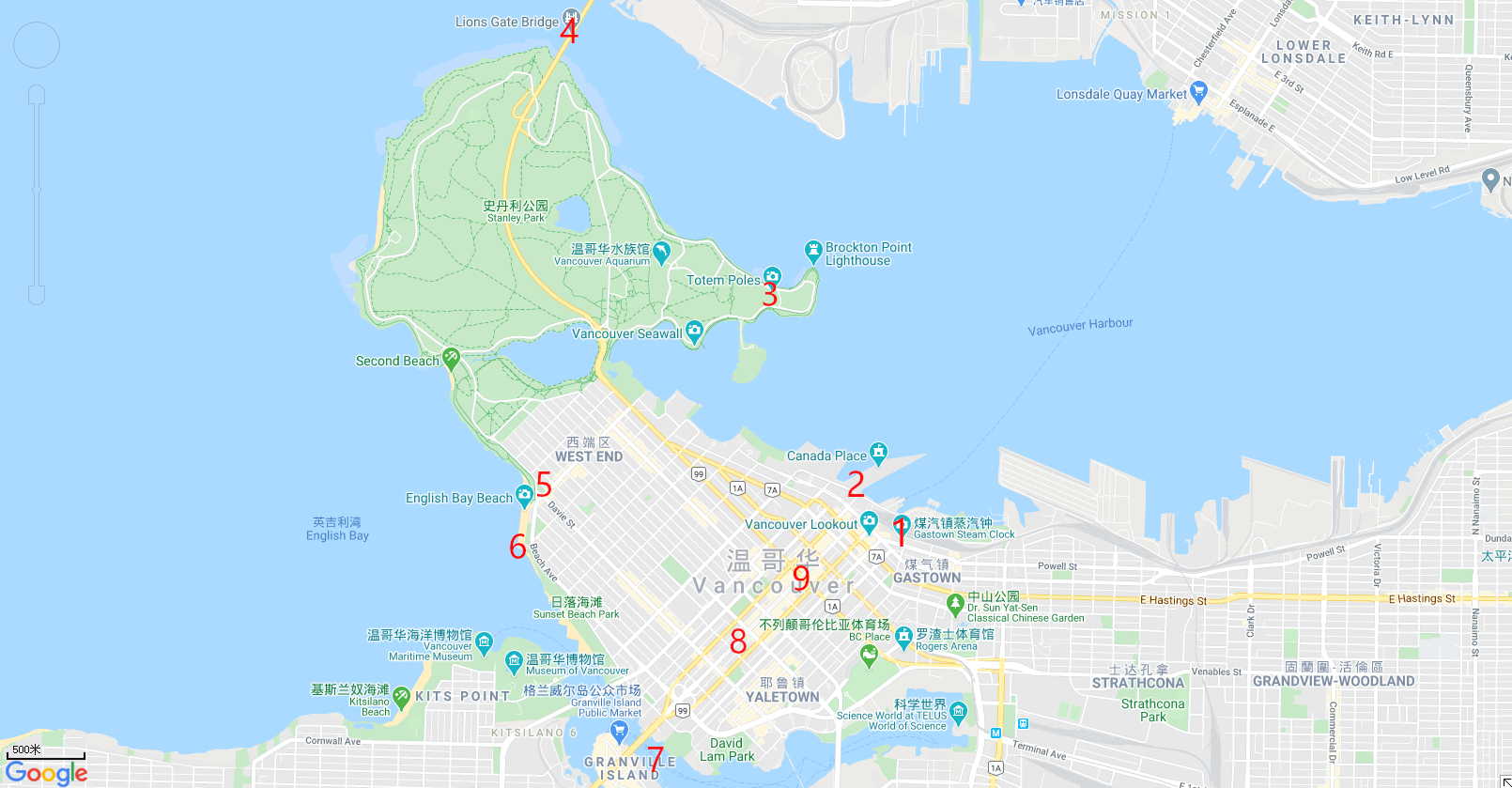 在温哥华机场,换钱的汇率奇差,没有必要换钱,用VISA信用卡可以买轻轨地铁票,到市区中心。