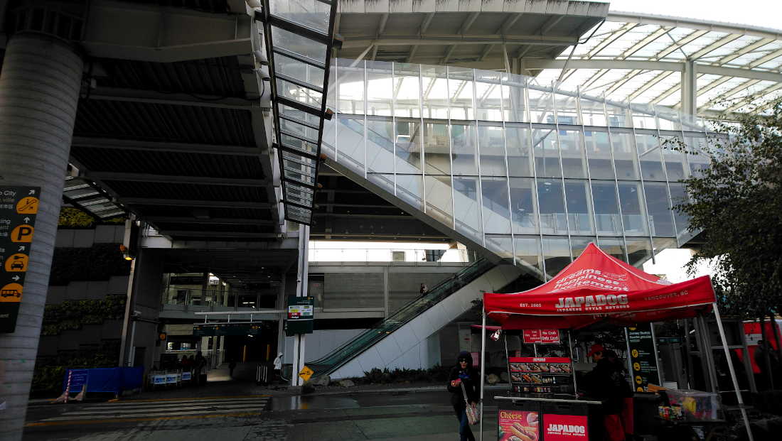 温哥华YVR机场的轻轨站(走出机场,看到对面一个巨大的天桥状架构,就是轻轨站了)