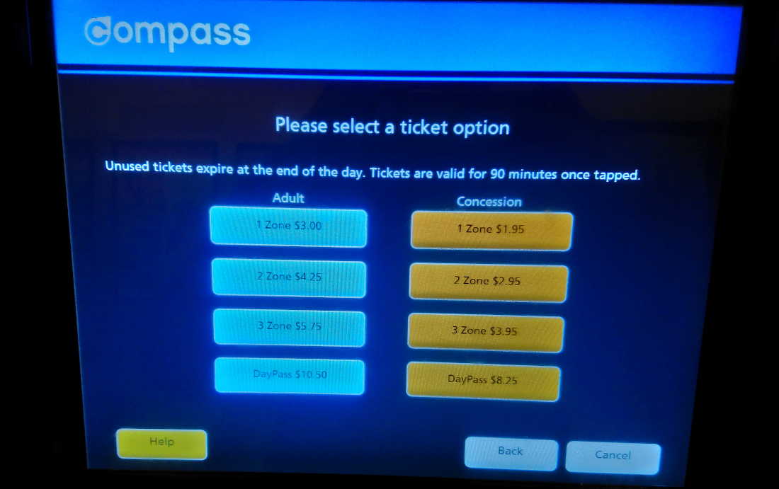 轻轨的票价,从机场到市区中心water front站(算是1区),成人票价3加币。接受VISA信用卡买票。