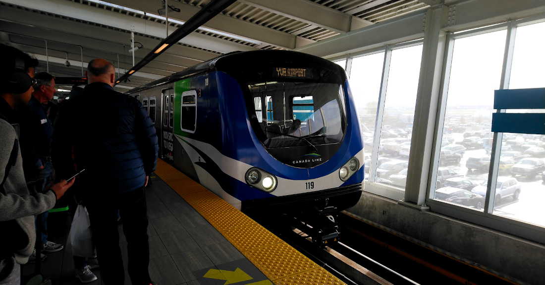 从机场到市区中心的canada line,无人驾驶轻轨列车。