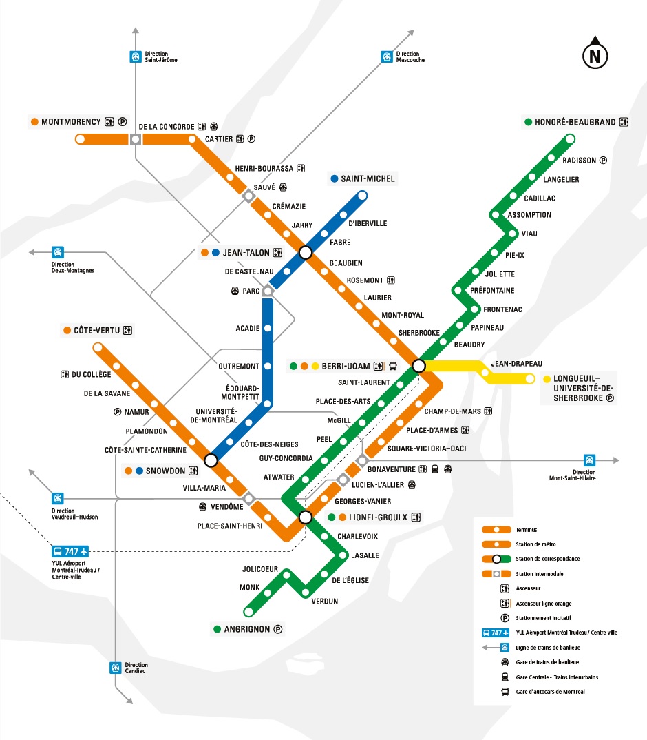 长途交通,以greyhound bus 和orleans express为主,此两大巴公司均在 montreal central bus station 停靠(地址: 1717 Rue Berri, Montreal)。