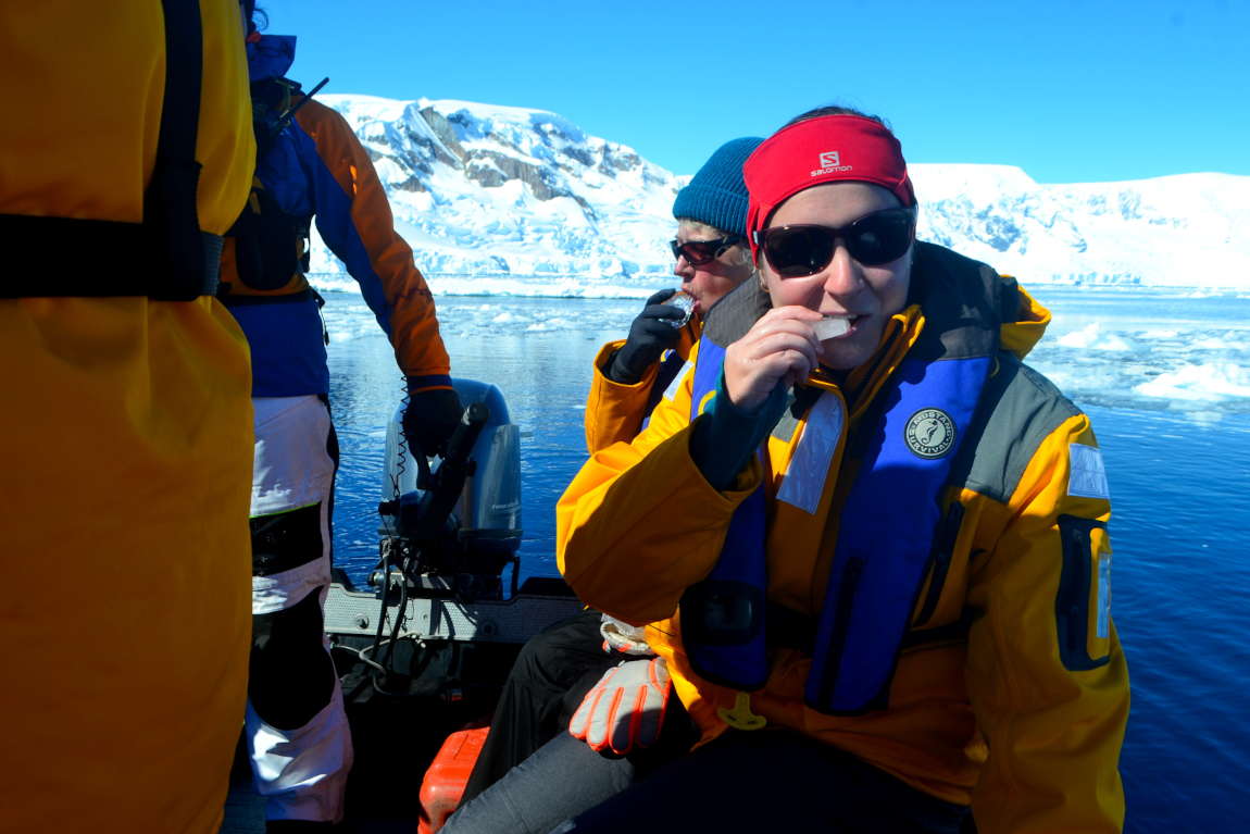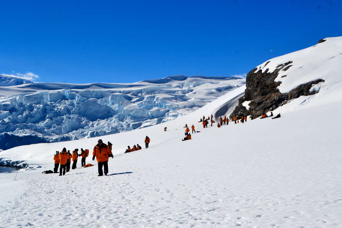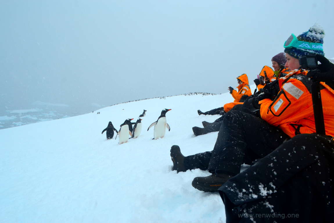 在Charlotte Bay第一次登上南极大陆,兴奋的人们