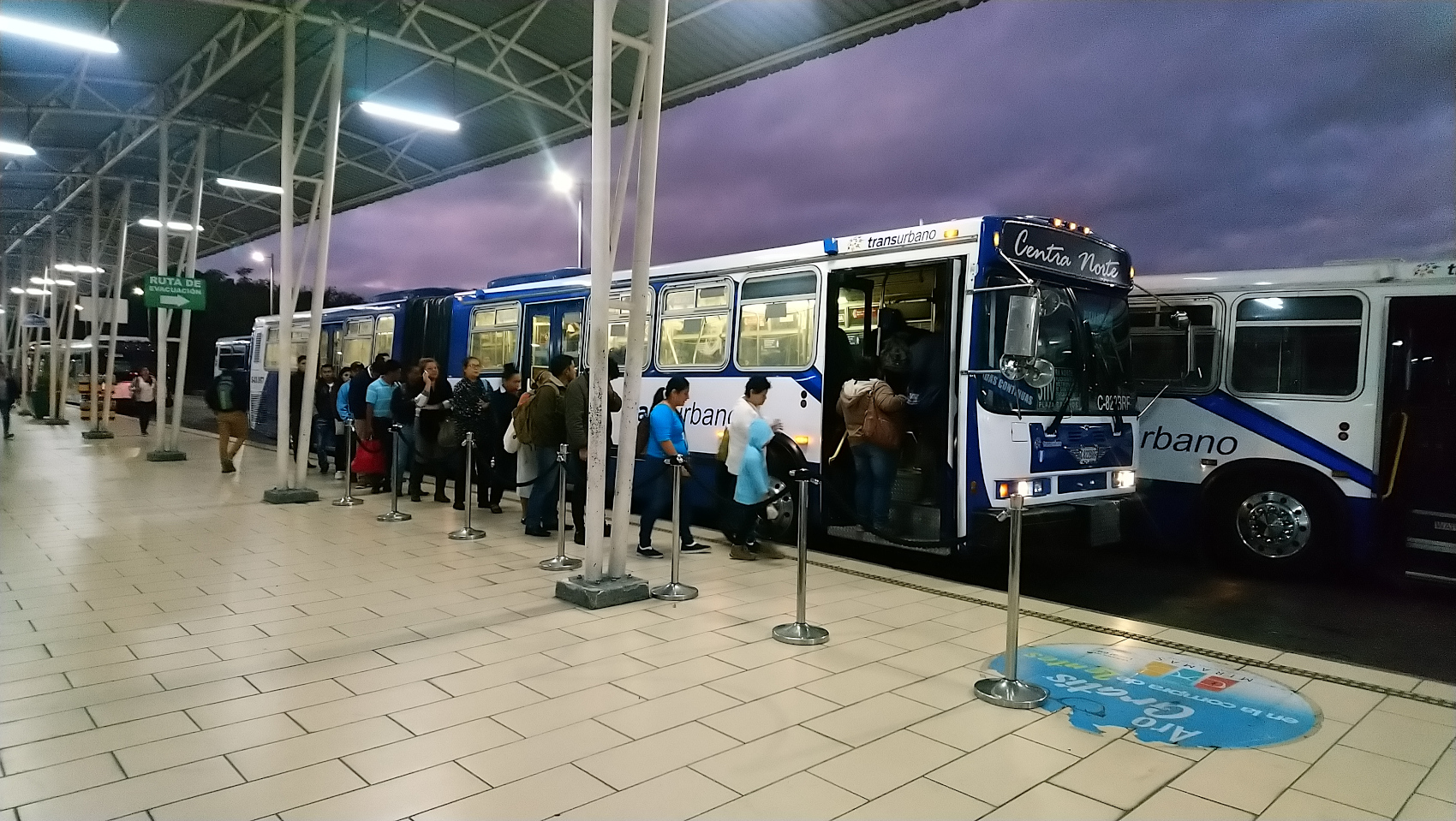 危地马拉城地铁站台(所谓的地铁,其实就是有固定上下客平台和专用行走线路的快速公交车)
