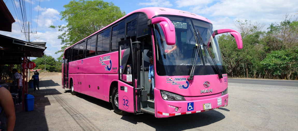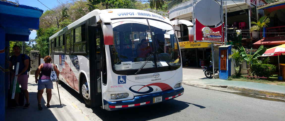 往来quepos的公交车(从早上5:00AM—21:00PM, 票价335哥币,公交车的时间间隔约25分钟一班)