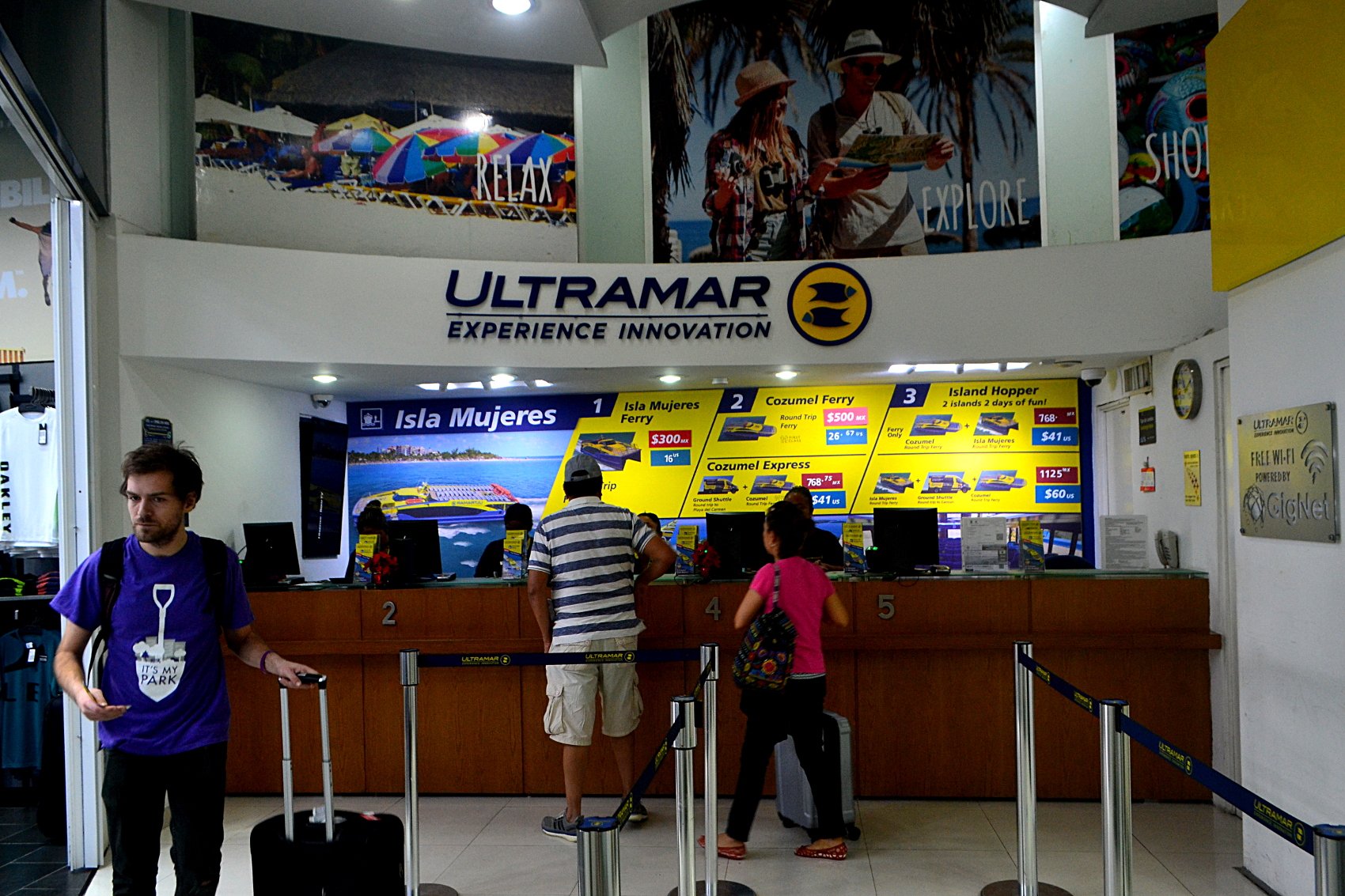 Puerto juarez码头的ULTRAMAR快船售票处。