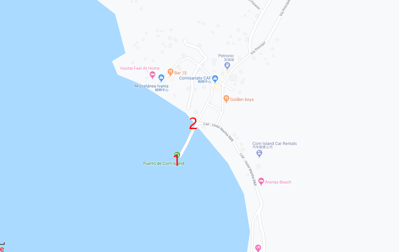 bluefields和小玉米岛没有直达的交通,必须要在大玉米岛中转。