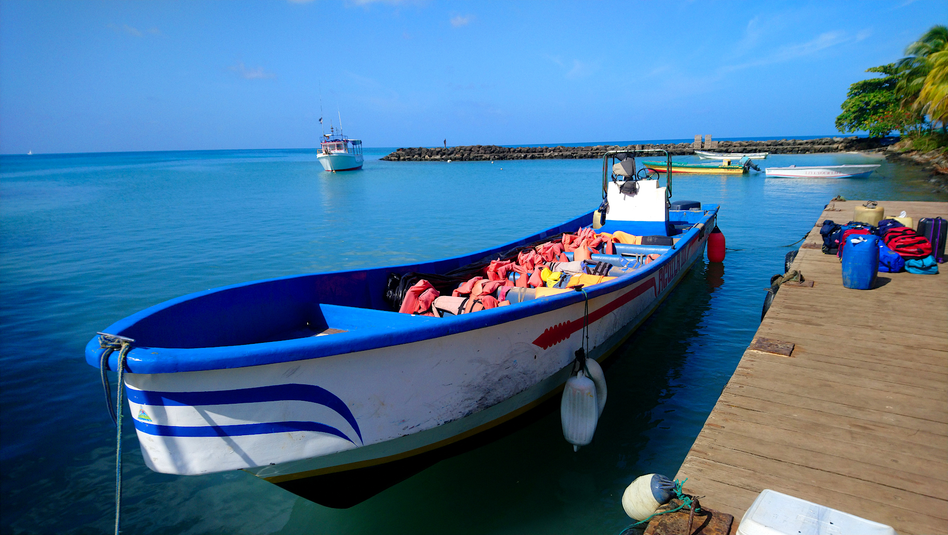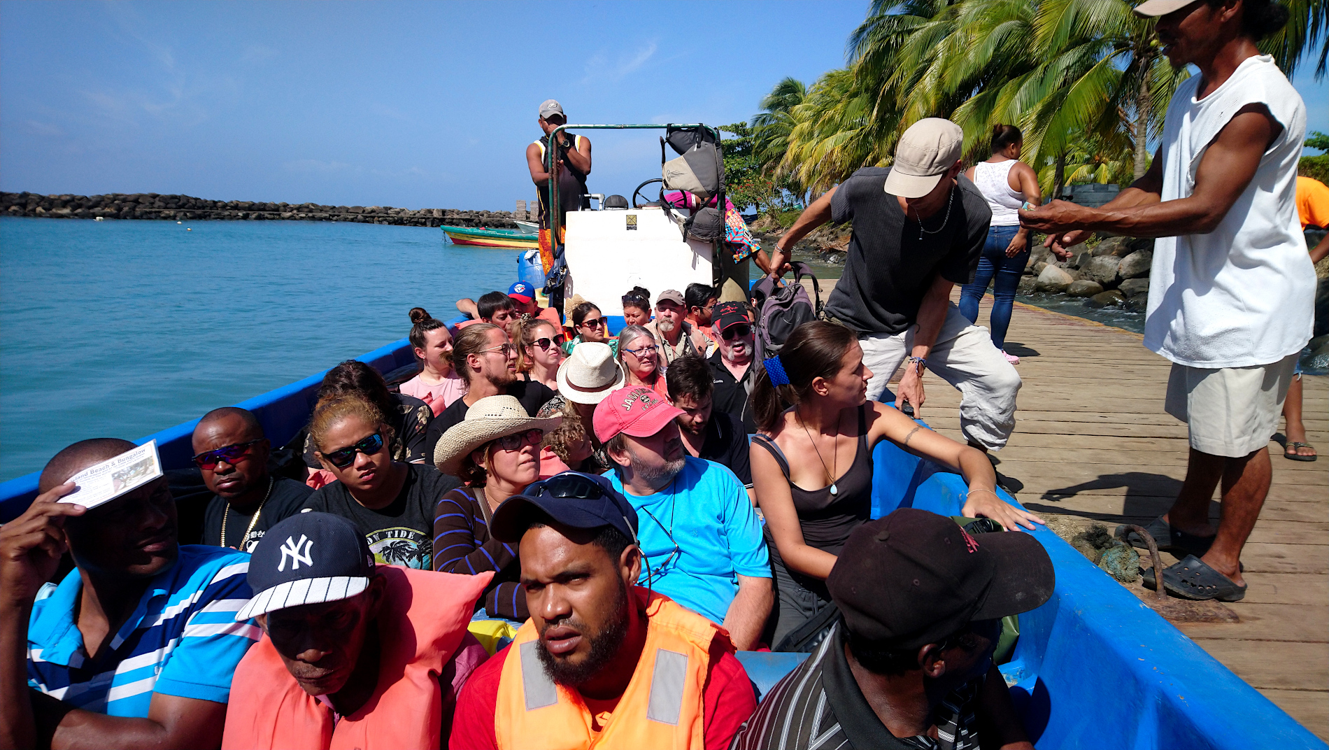 已经坐满人,将要去little corn的船只。