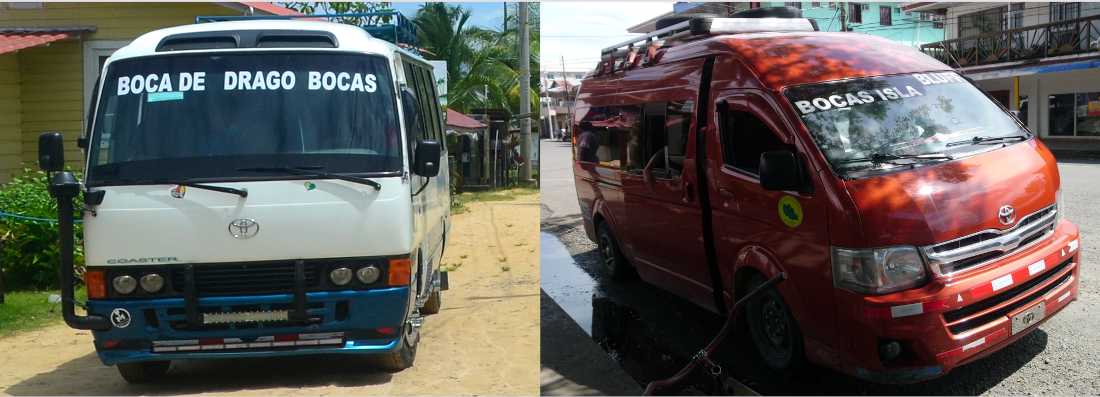 到boca del drago的公交车(上图左),和 到bluff beach的公交车(上图右,车头的玻璃上有写BLUFF)