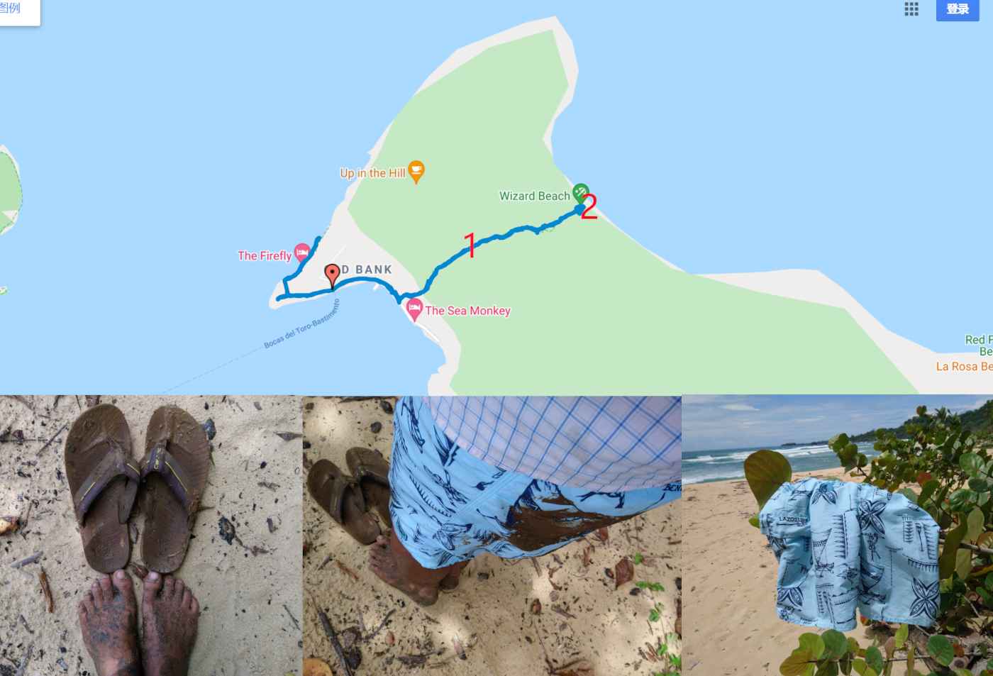 上图为从old bank的行走轨迹,从地点1到地点2路段,路况特别烂,都是那种在原始深林里,百年不见阳光的泥潭路。这次走这条路时,摔倒了N次,新买的拖鞋都弄坏了,手臂也被路边的钢丝划伤了,裤子都是泥。