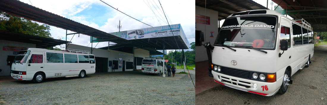 上图为Almirante车站(图左),及从Changuinola经过Almirante,到david的大巴(右)。