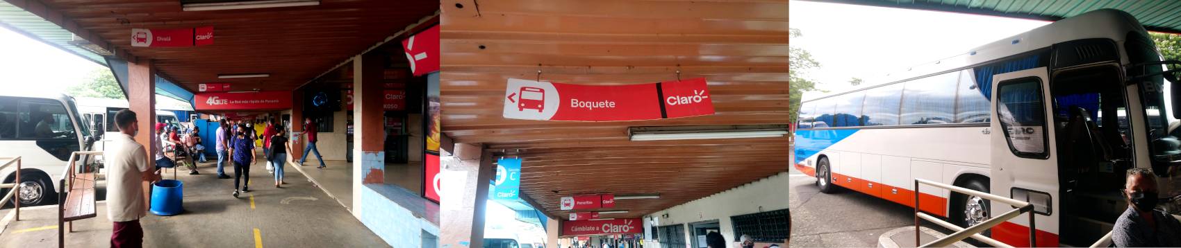 上图为david车站内(图左),标识去boquete的汽车停放处的牌子(图中),和去boquete汽车(图右)。