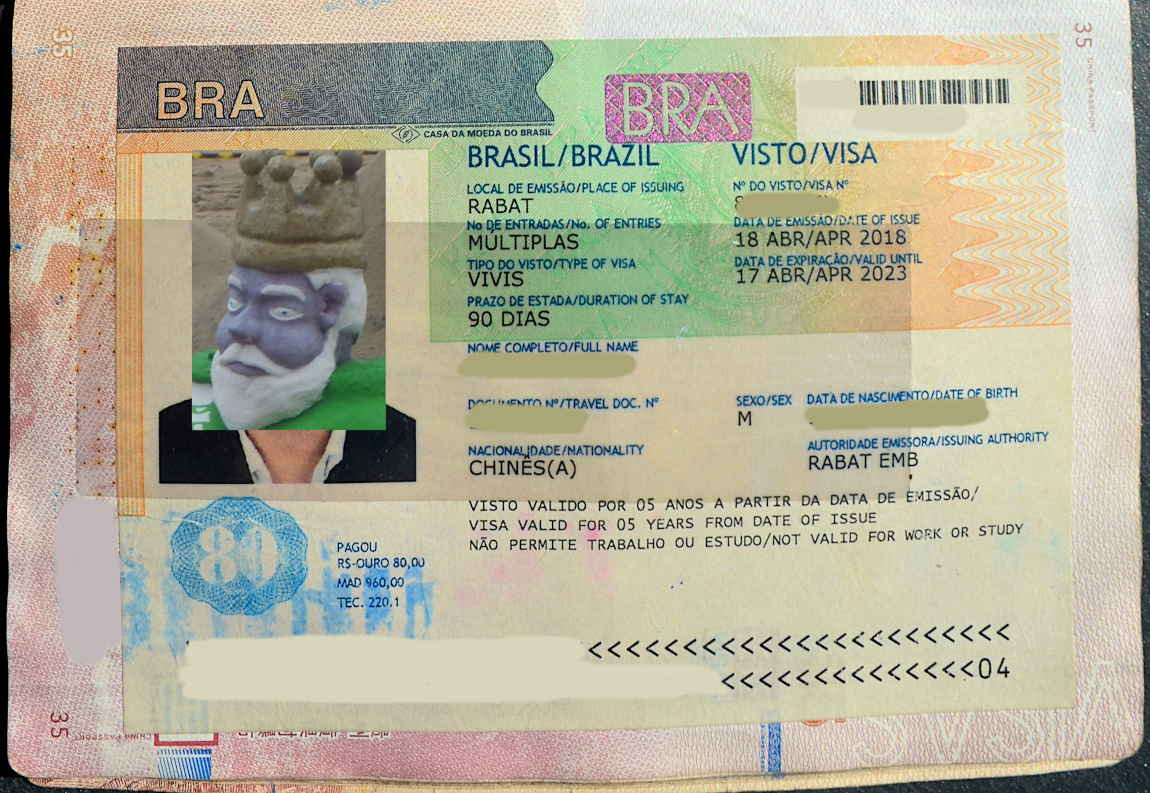 申请签证时,需要提前在网上预约,预约后再到大使馆进行面试。巴西5年多次签证的费用为104美金(或960摩洛哥币----当时是在摩洛哥的拉巴特申请的,接受摩洛哥币或美金 )