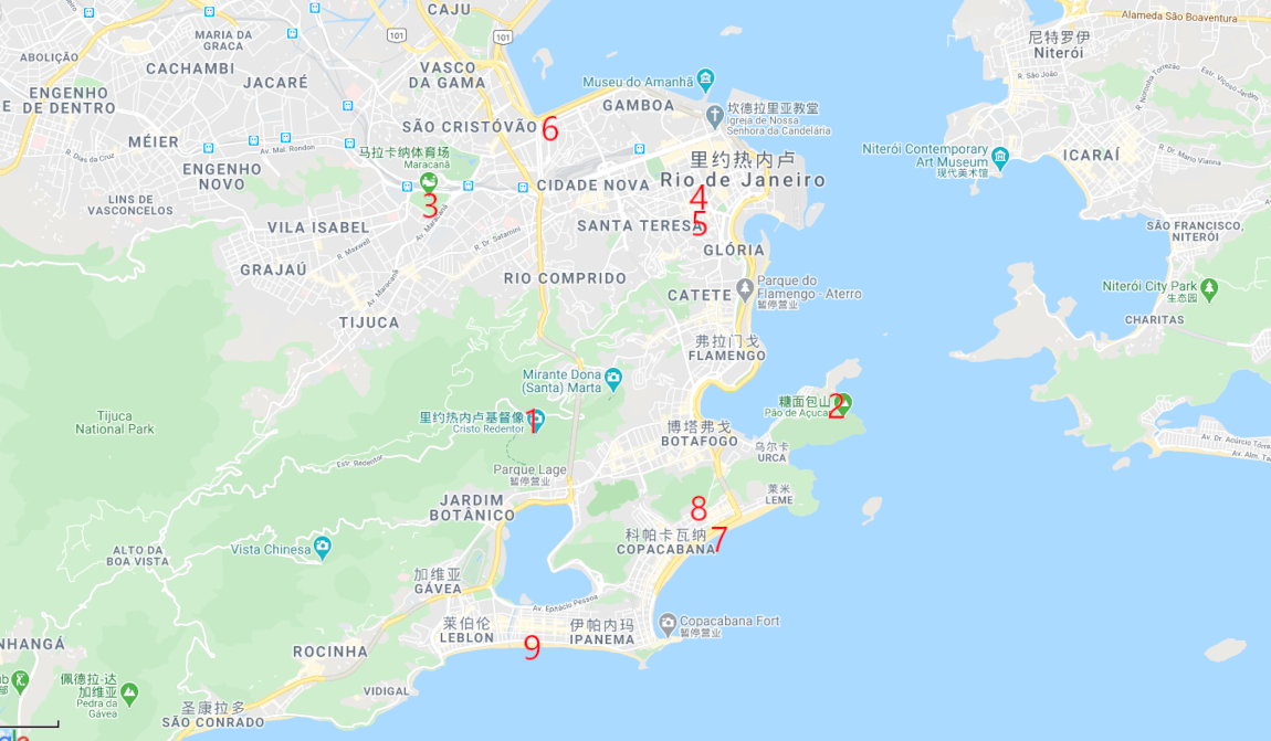 另外,城市的中心区(旧市区)有很多流浪汉,游客尽量住到南区的Copacabana 海滩或Ipanema 海滩,整体环境和治安气氛完全不一样。