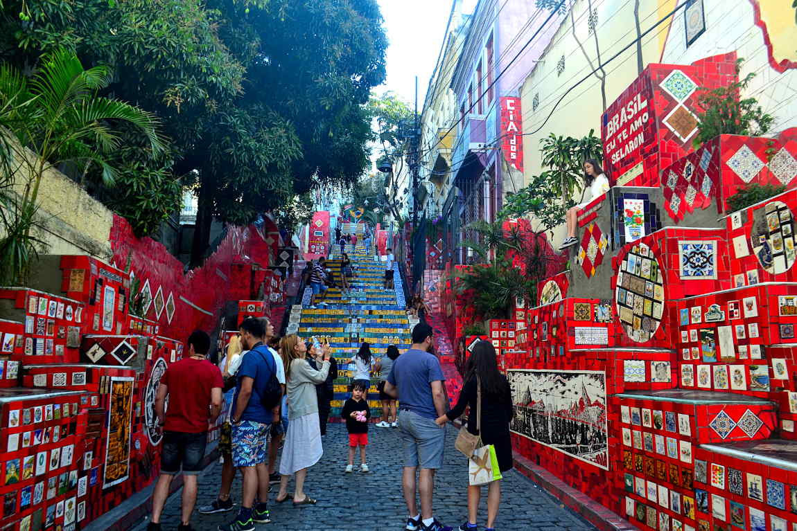 塞勒隆阶梯修建于1990-2013年,是智利出生的艺术家塞勒隆的作品,被称作"我向巴西人民的致敬"。1990年, 画家塞勒隆,开始翻新沿着他的房子前面的破旧的台阶。起初,邻居嘲笑他选择的颜色。因为他覆盖了蓝色、绿色和黄色的瓷砖 – 这是巴西国旗的颜色。塞勒隆用卖画所得,来维持这项漫长而累人的工作。作品一直不断延伸,似乎不会完成。塞勒隆称,"这个疯狂而独特的梦想只会在我死亡的那天结束"。最初,作品所用的瓷砖,来自里约的各个建筑工地以及街道上的城市垃圾。但在后来,大多数瓷砖都是来自世界各地的游客捐赠的。在2000多块瓷砖中,有300块是塞勒隆手绘的。其中有描绘一个怀孕的非洲妇女。塞勒隆没有评论这一点, 只是说这是"我过去的一个个人问题"。2013年1月10日,塞勒隆在台阶上死去。
