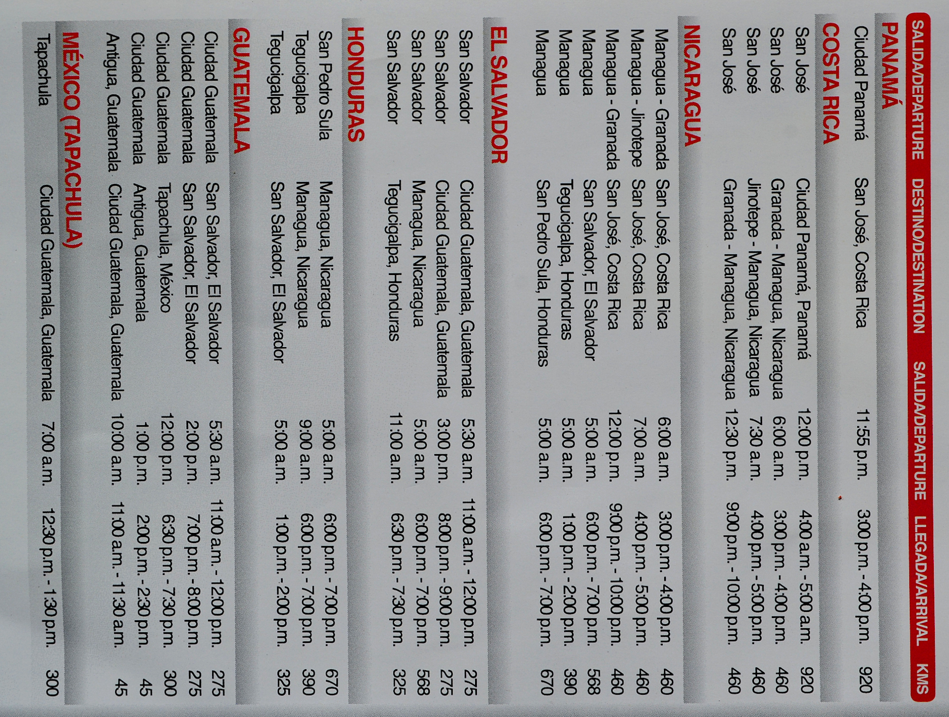 从洪都拉斯tegucigalpa,到尼加拉瓜的那马瓜,出发时间9:00 (途径leon,票价26美金,耗时 7小时)。