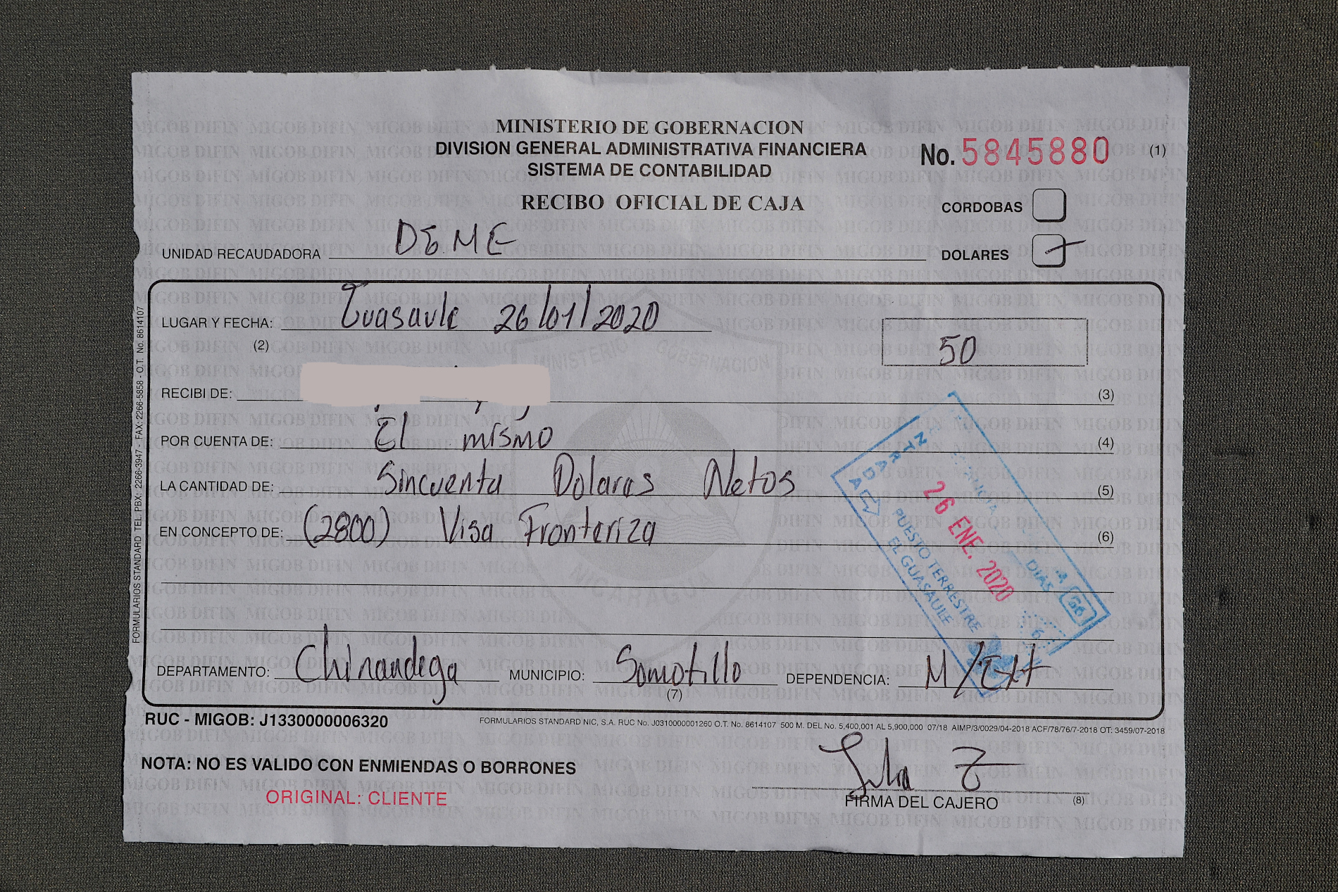 到了尼加拉瓜入境时,车上的服务员让我在傍边等着,他自己就开始帮忙跑单了,看着他不断地往各个办公室跑,去找相关的海关官员,并跑到外面去把护照上的某些页复印了,再拿回海关办公室处。