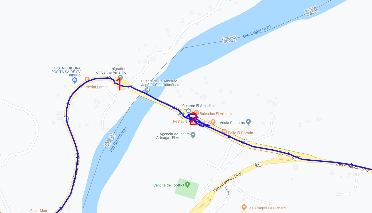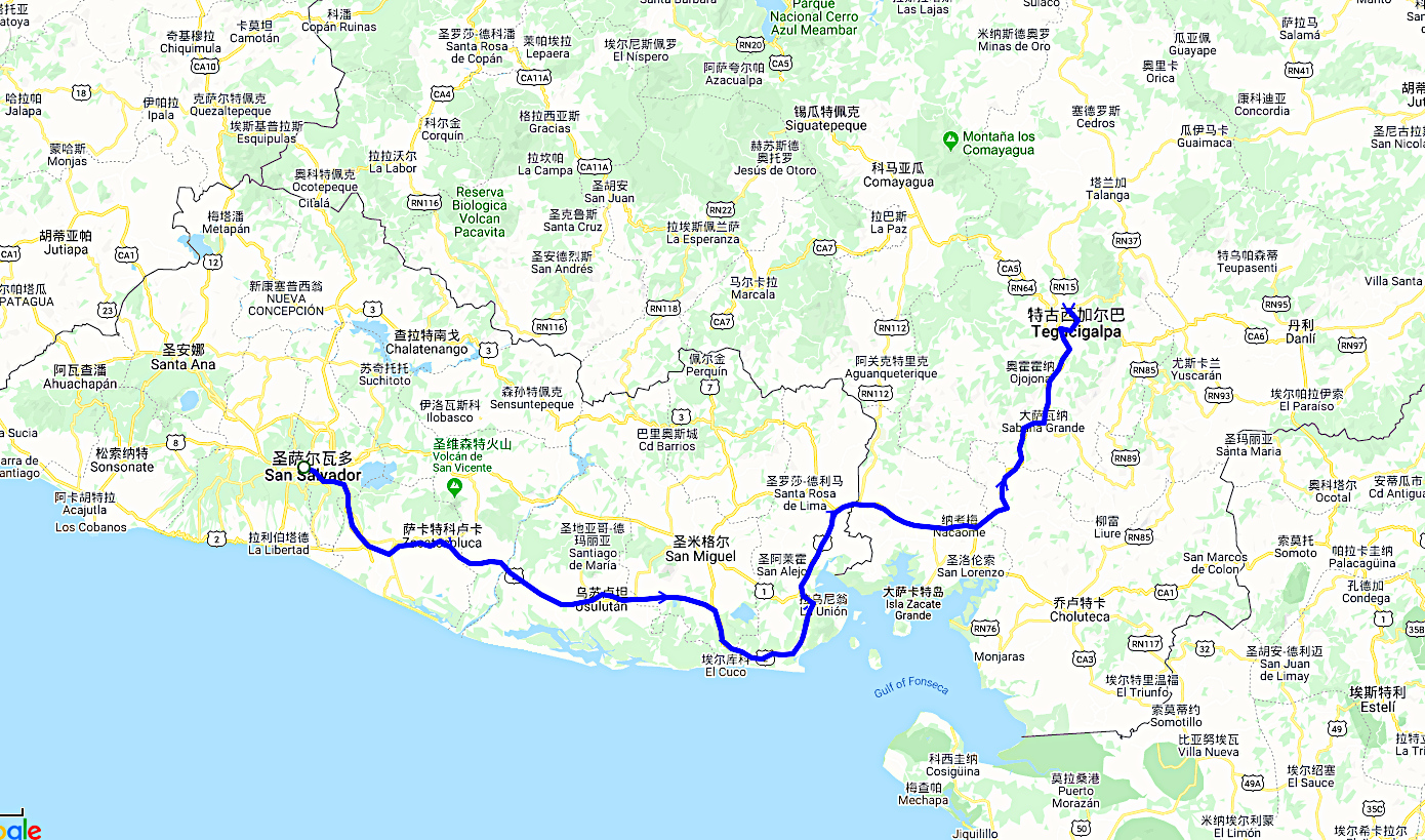 以上为从萨尔瓦多城陆路过境到洪都拉斯,所记录的GPS轨迹