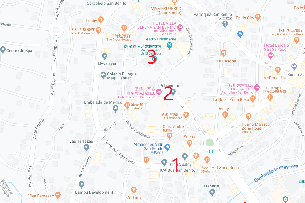 2 pullmantur bus 停车点(hotel marriott tegucigalpa,中文名叫万豪酒店)