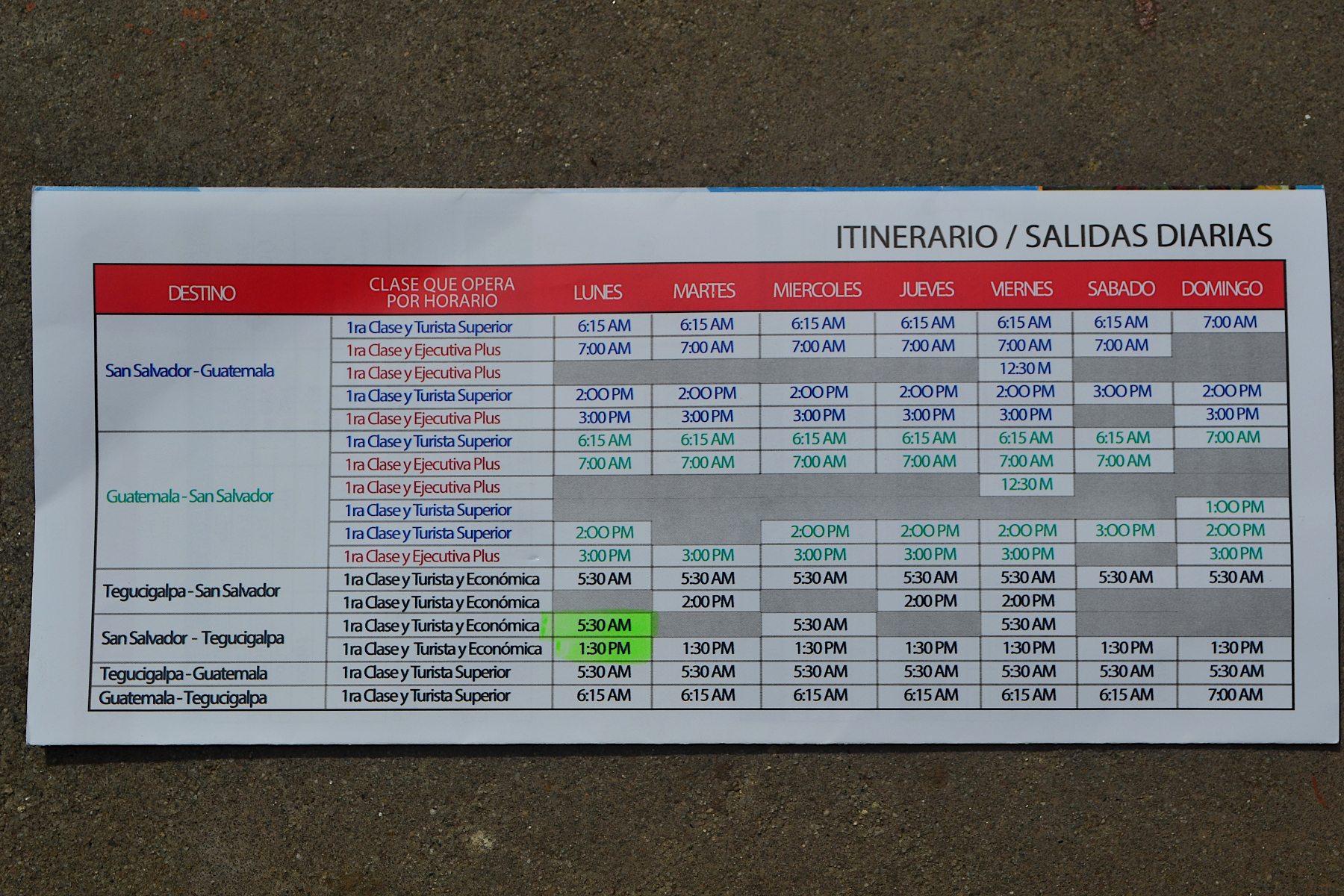 pullmantur bus 从萨尔瓦多出发时间是5:30AM, 耗时 7.5小时,最便宜票价32美金, 在洪都拉斯首都停车地点,距离市区中心Palmira hostel 1.5公里的hotel marriott tegucigalpa,白天到达,问题不大。