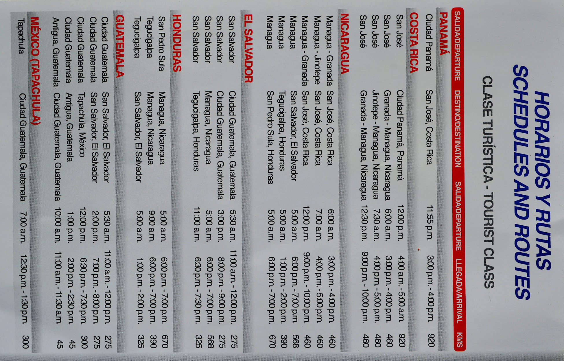 tica bus 路线和时刻表
