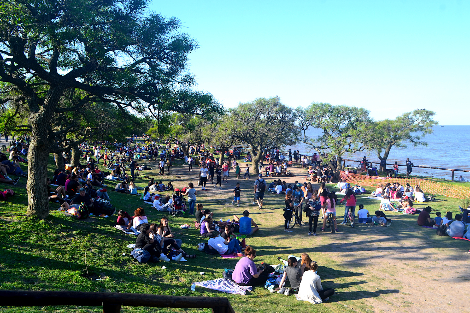 周末在河边聚会放松的人们