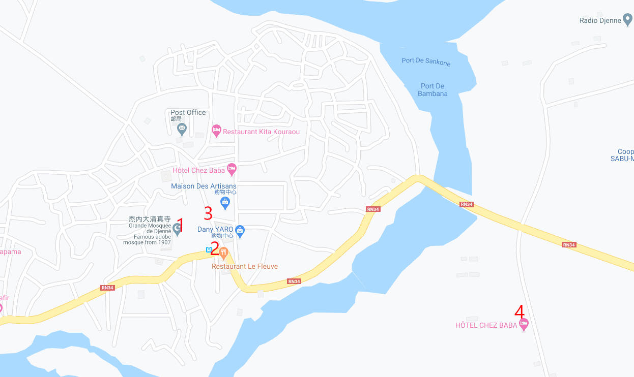再后在清真寺广场附近碰到了旅馆的老板,是他带我走了一公里左右,另外一个地方才找到的(位置如图中4所示),